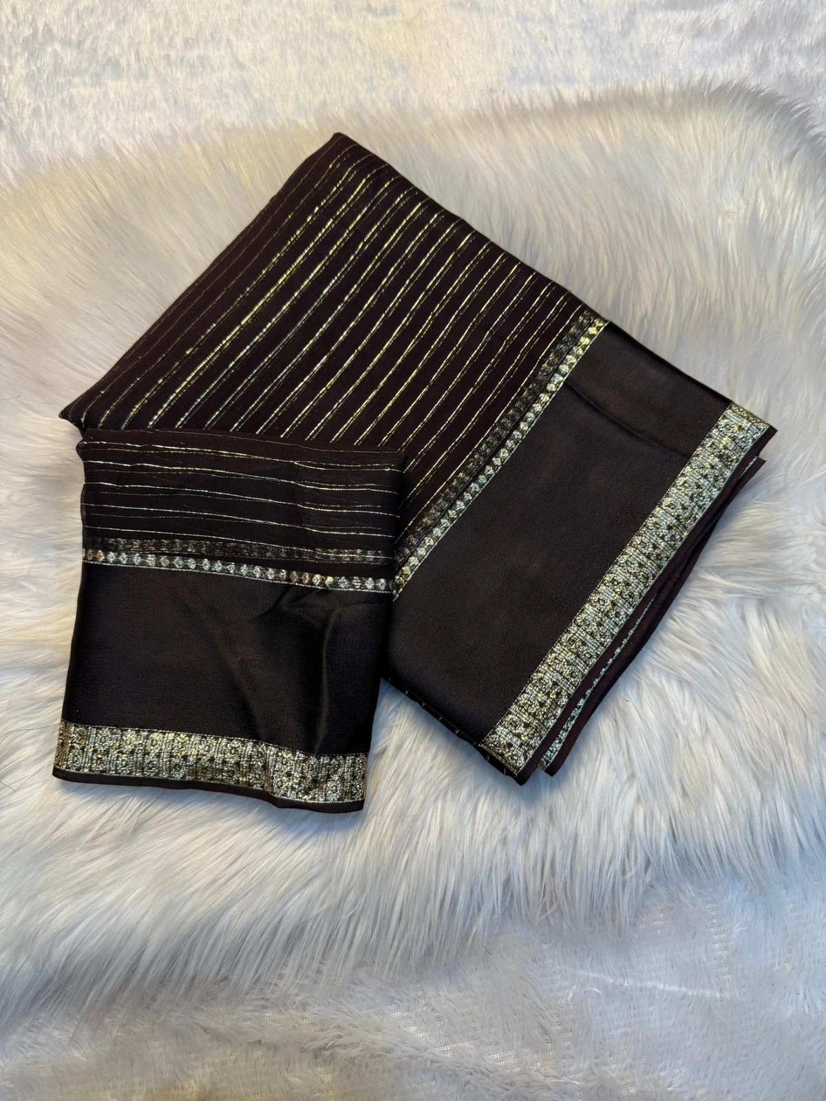 Experience the elegance of pure viscose georgette with intricate weaving and a stunning satin patta border perfect for any occasion this saree exudes sophisticated and style