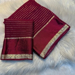 Experience the elegance of pure viscose georgette with intricate weaving and a stunning satin patta border perfect for any occasion this saree exudes sophisticated and style