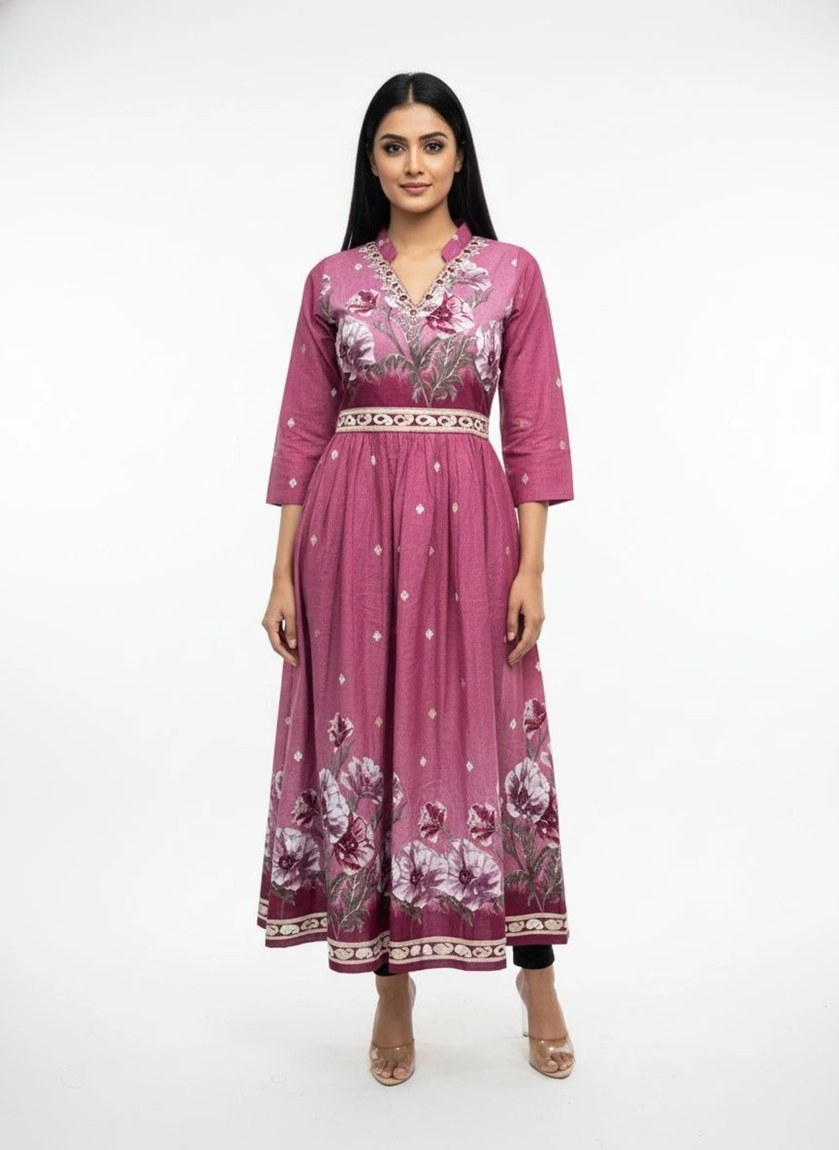 Add effortless elegance to your ethnic wardrobe with this Indigo Blue Floral Printed Anarkali Kurta. Crafted in a soft, breathable fabric, this kurta features a flattering flared silhouette with delicate floral motifs and a beautifully detailed yoke. The three-quarter sleeves and graceful flow make it ideal for both everyday wear and special occasions. Pair it with leggings or palazzos for a timeless, stylish look.